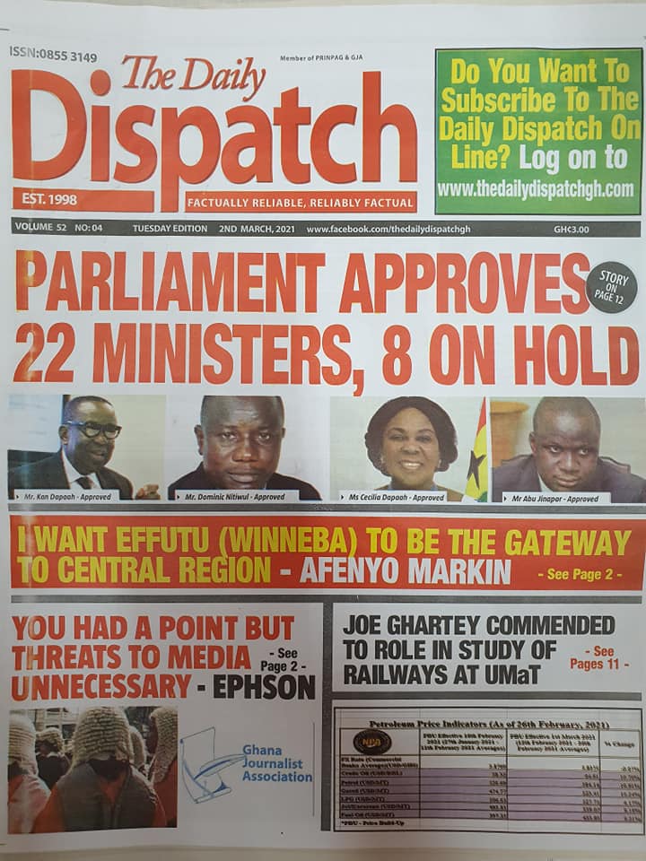 Home/Newspaper Headlines/Today at the newsstand Newspaper Headlines Today at the newsstand 0 125 Less than a minute Facebook Twitter LinkedIn Pinterest Skype WhatsApp Telegram Viber Source: Ghana/otecfmghana.com 0 125 Less than a minute Facebook Twitter LinkedIn Pinterest Skype WhatsApp Telegram Viber Show More Share Facebook Twitter LinkedIn Pinterest Skype WhatsApp Telegram Viber Share via Email Print