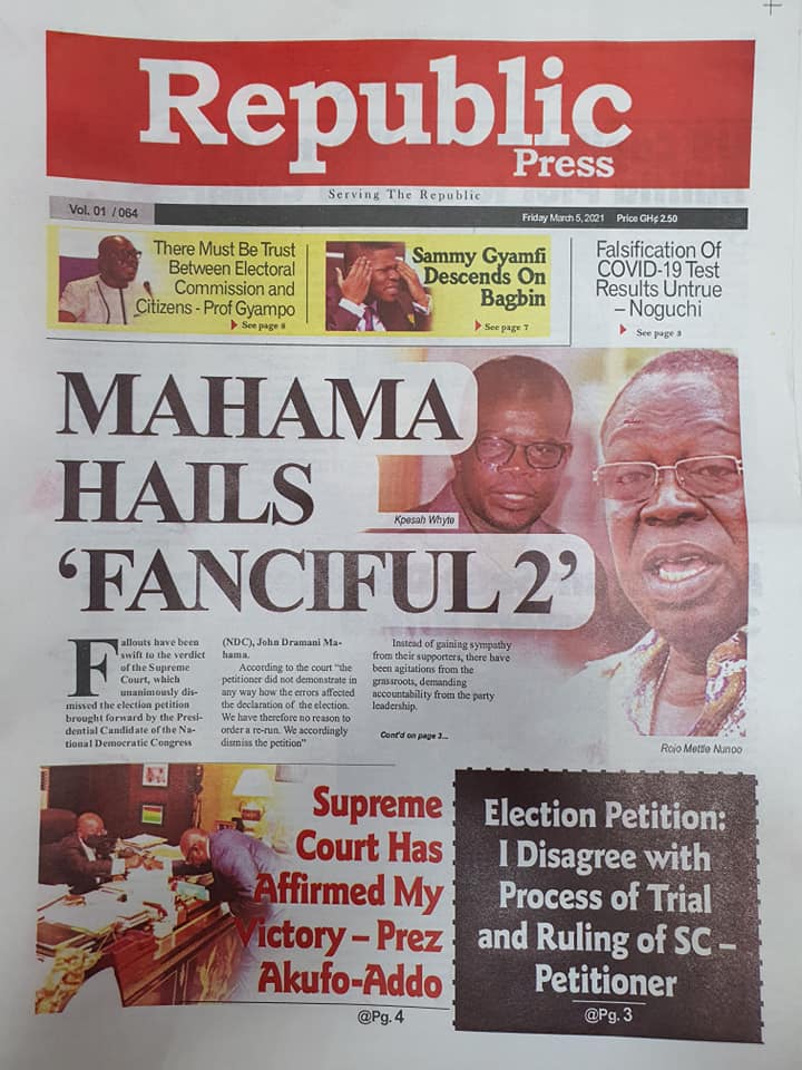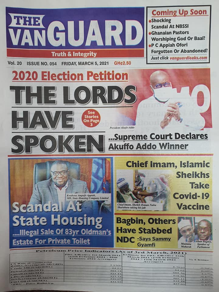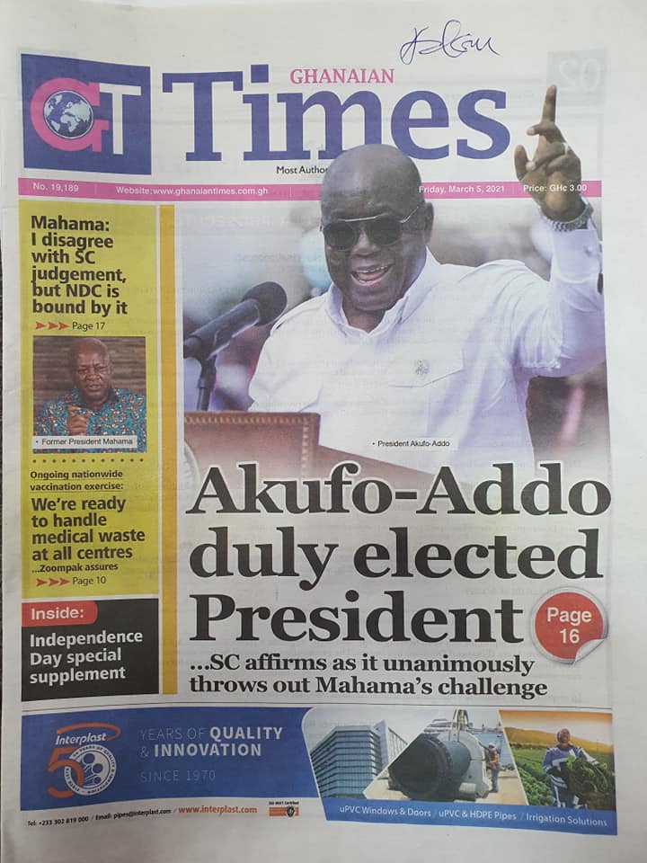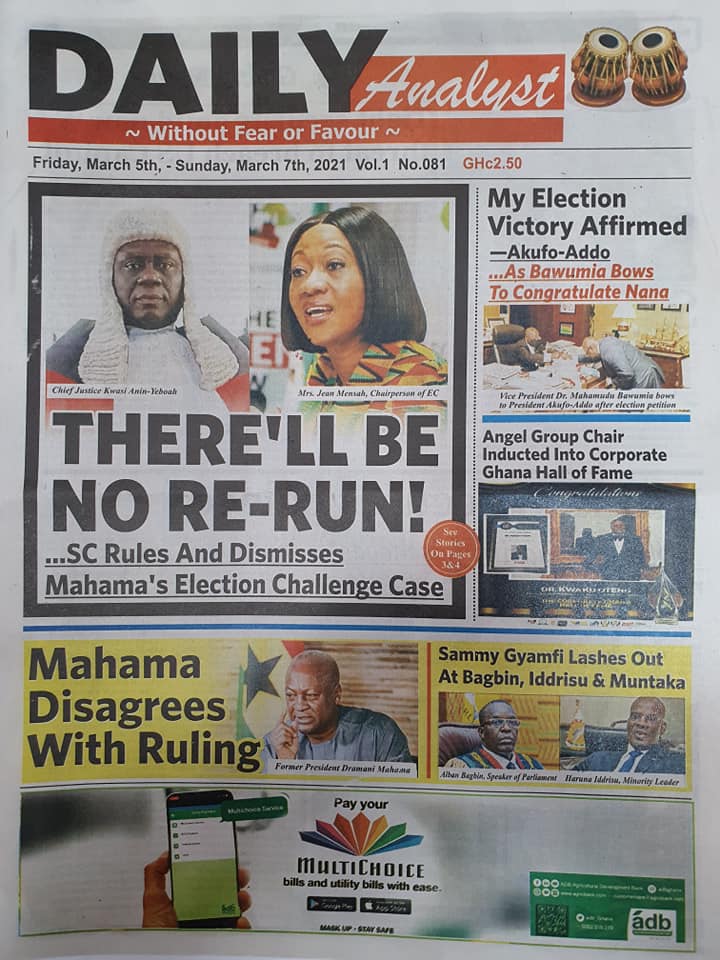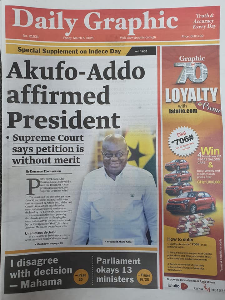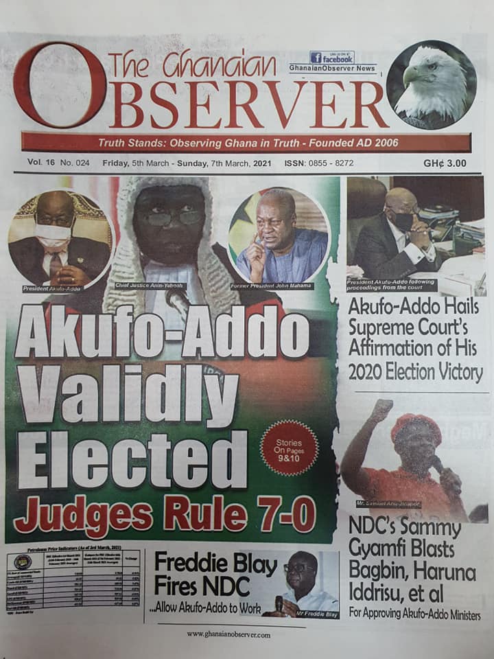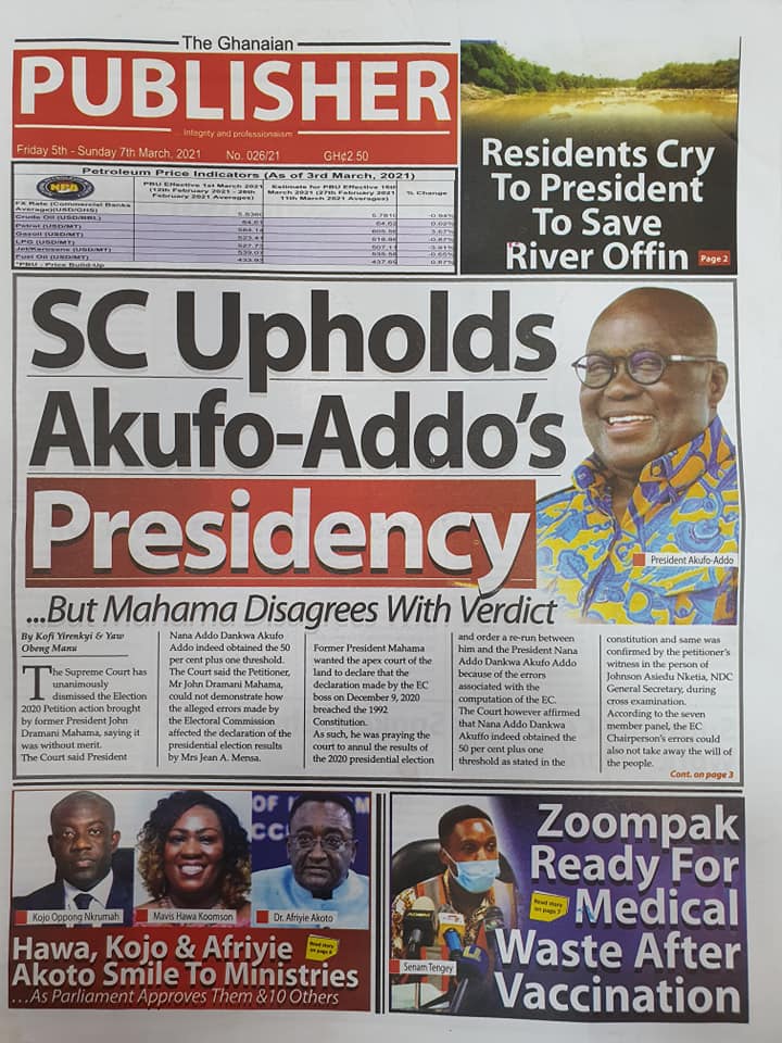 - Akufo-Addo’s 2020 victory affirmed – Supreme Court throws out Mahama’s unmeritorious petition