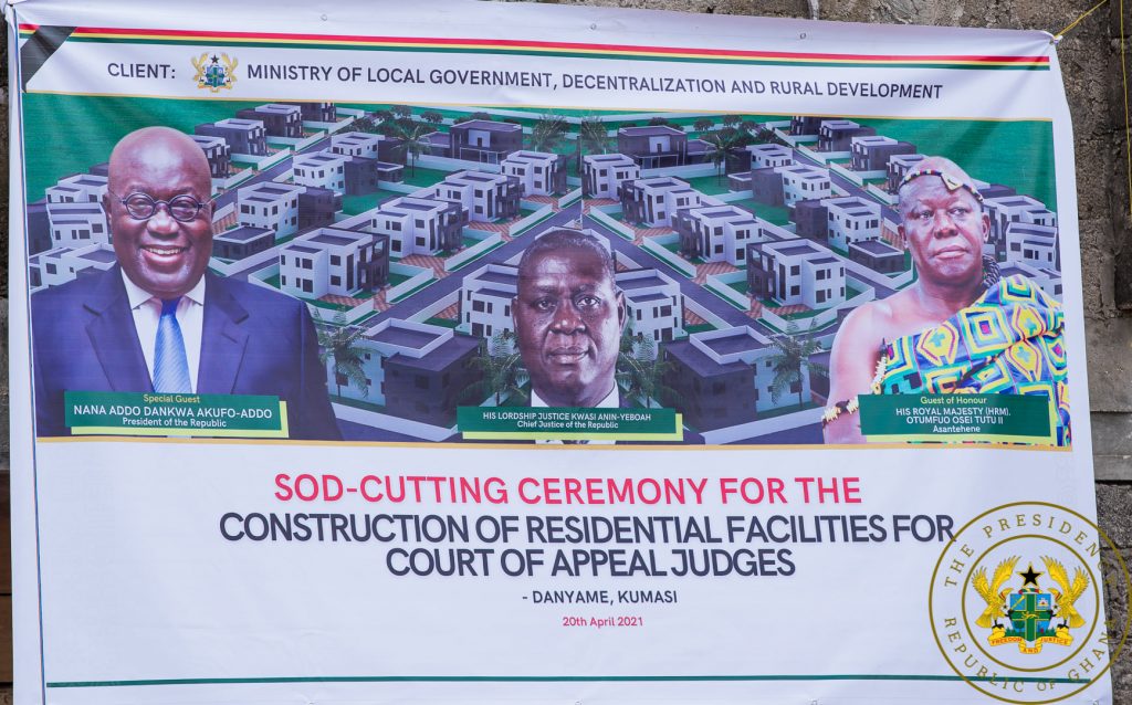 The President of the Republic, Nana Addo Dankwa Akufo-Addo, has cut the sod for the commencement of work on a new Court of Appeal complex and permanent residential facilities for Court of Appeal judges, all to be located in Kumasi.