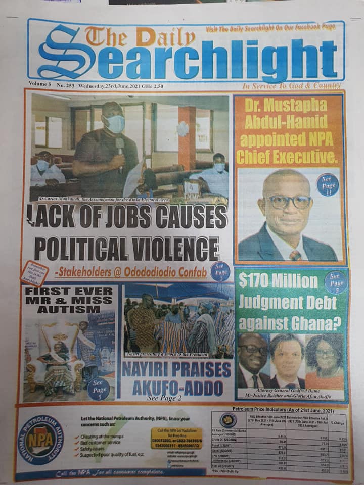 Home/Newspaper Headlines/Today at the newesstand Newspaper Headlines Today at the newesstand 0 272 Less than a minute Facebook Twitter LinkedIn Pinterest Skype WhatsApp Telegram Viber Source: Ghana/otecfmghana.com 0 272 Less than a minute Facebook Twitter LinkedIn Pinterest Skype WhatsApp Telegram Viber Show More Share Facebook Twitter LinkedIn Pinterest Skype WhatsApp Telegram Viber Share via Email Print