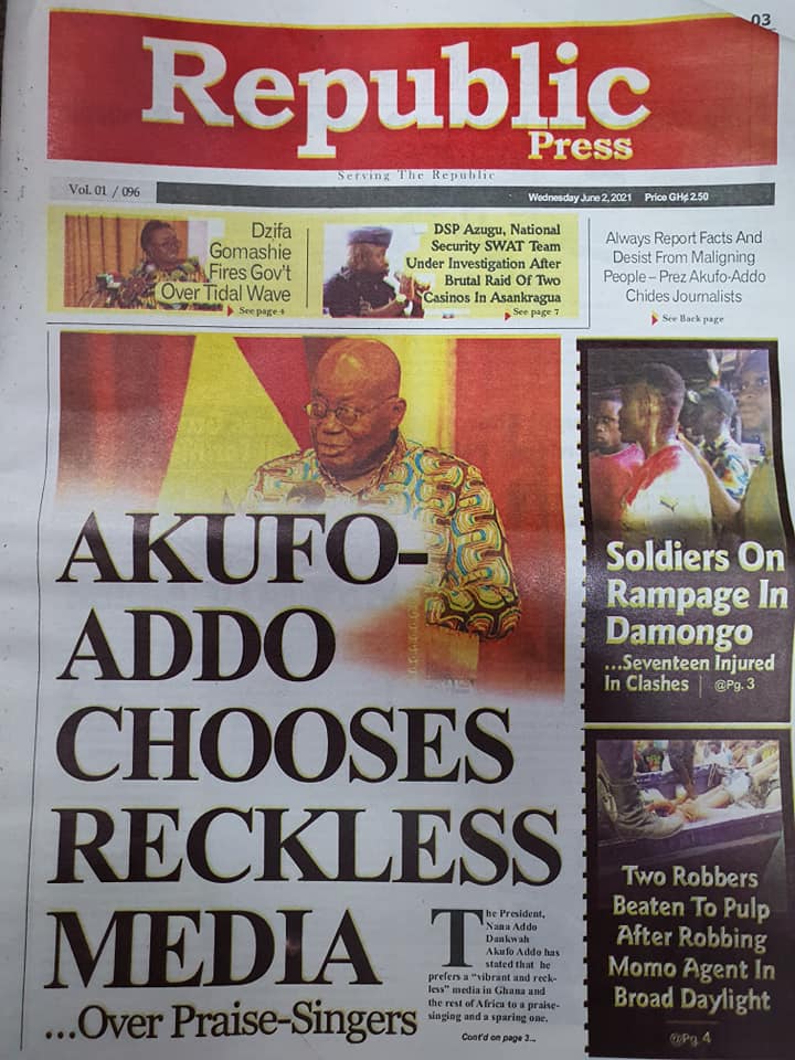 Home/Newspaper Headlines/Today at the newsstand Newspaper Headlines Today at the newsstand 0 179 Less than a minute Facebook Twitter LinkedIn Pinterest Skype WhatsApp Telegram Viber Source: Ghana/otecfmghana.com 0 179 Less than a minute Facebook Twitter LinkedIn Pinterest Skype WhatsApp Telegram Viber Show More Share Facebook Twitter LinkedIn Pinterest Skype WhatsApp Telegram Viber Share via Email Print