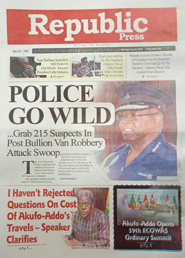 Home/Newspaper Headlines/Today at the newsstand Newspaper Headlines Today at the newsstand 0 226 Less than a minute Facebook Twitter LinkedIn Pinterest Skype WhatsApp Telegram Viber Source: Ghana/otecfmghana.com 0 226 Less than a minute Facebook Twitter LinkedIn Pinterest Skype WhatsApp Telegram Viber Show More Share Facebook Twitter LinkedIn Pinterest Skype WhatsApp Telegram Viber Share via Email Print