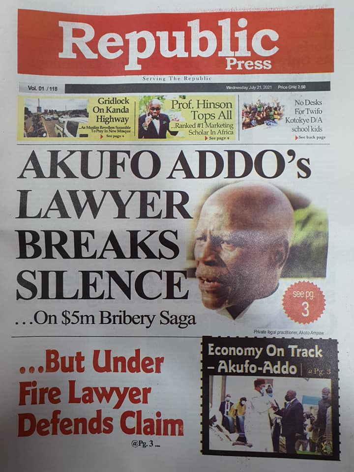 Home/Newspaper Headlines/Today at the newsstand Newspaper Headlines Today at the newsstand 0 269 Less than a minute Facebook Twitter LinkedIn Pinterest Skype WhatsApp Telegram Viber Source: Ghana/otecfmghana.com 0 269 Less than a minute Facebook Twitter LinkedIn Pinterest Skype WhatsApp Telegram Viber Show More Share Facebook Twitter LinkedIn Pinterest Skype WhatsApp Telegram Viber Share via Email Print