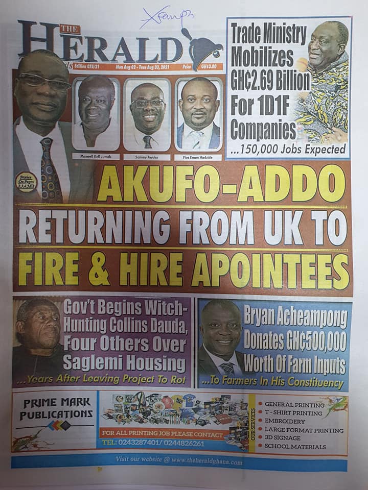 Home/Newspaper Headlines/Today at the newsstand Newspaper Headlines Today at the newsstand 0 105 Less than a minute Facebook Twitter LinkedIn Pinterest Skype WhatsApp Telegram Viber Source: Ghana/otecfmghana.com 0 105 Less than a minute Facebook Twitter LinkedIn Pinterest Skype WhatsApp Telegram Viber Show More Share Facebook Twitter LinkedIn Pinterest Skype WhatsApp Telegram Viber Share via Email Print