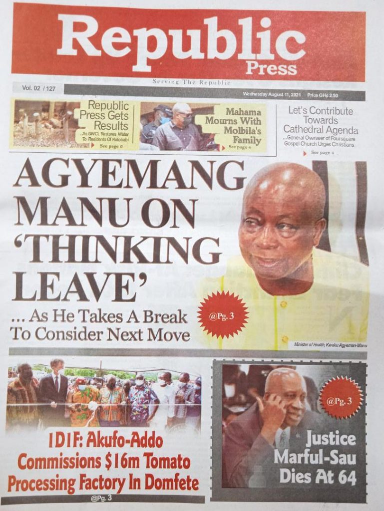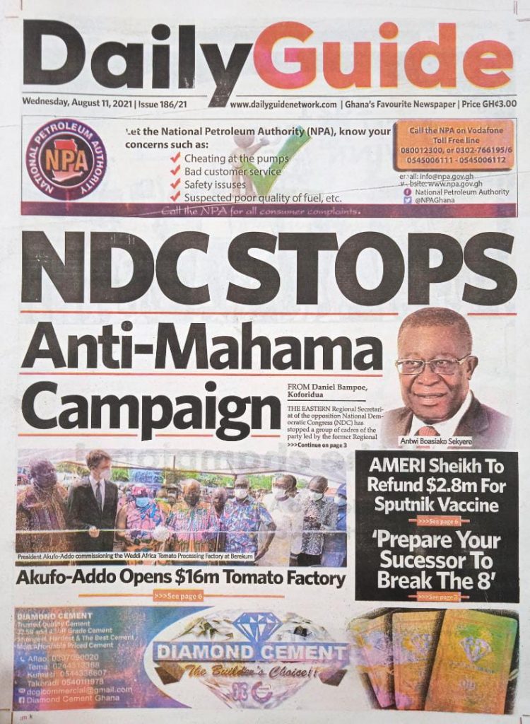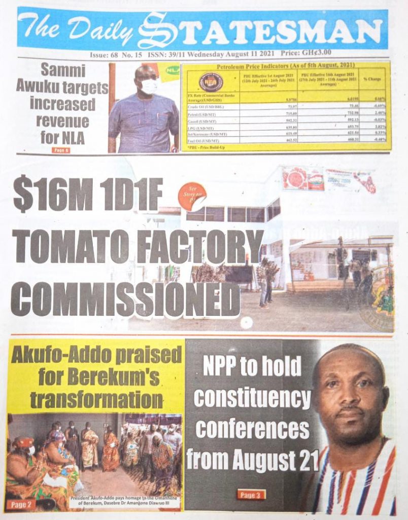 Home/Newspaper Headlines/Today at the newsstand Newspaper Headlines Today at the newsstand 0 166 Less than a minute Facebook Twitter LinkedIn Pinterest Skype WhatsApp Telegram Viber Source: Ghana/otecfmghana.com 0 166 Less than a minute Facebook Twitter LinkedIn Pinterest Skype WhatsApp Telegram Viber Show More Share Facebook Twitter LinkedIn Pinterest Skype WhatsApp Telegram Viber Share via Email Print