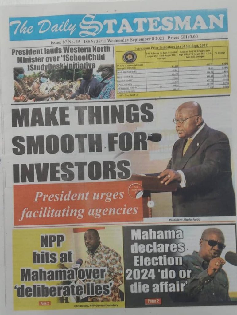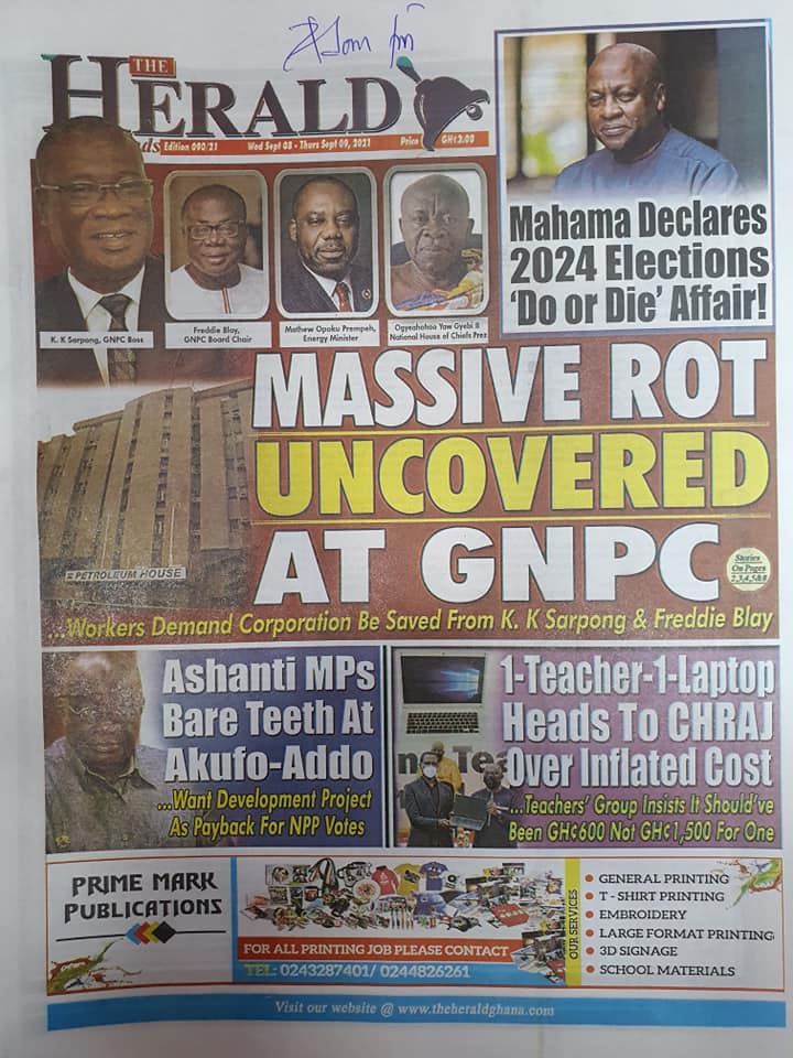 Home/Newspaper Headlines/Today at the newsstand Newspaper Headlines Today at the newsstand 0 113 Less than a minute Facebook Twitter LinkedIn Pinterest Skype WhatsApp Telegram Viber Source: Ghana/otecfmghana.com 0 113 Less than a minute Facebook Twitter LinkedIn Pinterest Skype WhatsApp Telegram Viber Show More Share Facebook Twitter LinkedIn Pinterest Skype WhatsApp Telegram Viber Share via Email Print