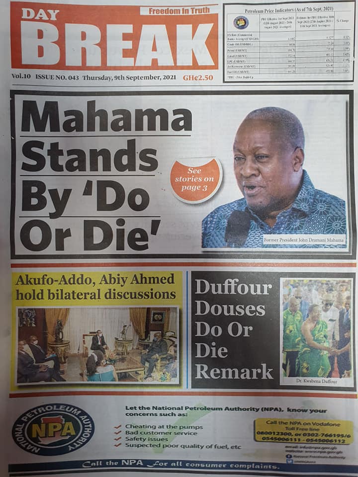 Home/Newspaper Headlines/Today at the newsstand Newspaper Headlines Today at the newsstand 0 123 Less than a minute Facebook Twitter LinkedIn Pinterest Skype WhatsApp Telegram Viber Source: Ghana/otecfmghana.com 0 123 Less than a minute Facebook Twitter LinkedIn Pinterest Skype WhatsApp Telegram Viber Show More Share Facebook Twitter LinkedIn Pinterest Skype WhatsApp Telegram Viber Share via Email Print