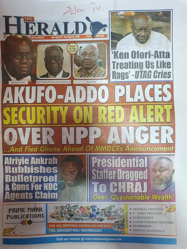 Home/Newspaper Headlines/Today at the newsstand Newspaper Headlines Today at the newsstand 0 18 Less than a minute Facebook Twitter LinkedIn Pinterest Skype WhatsApp Telegram Viber Source: Ghana/otecfnmghana.com 0 18 Less than a minute Facebook Twitter LinkedIn Pinterest Skype WhatsApp Telegram Viber Show More Share Facebook Twitter LinkedIn Pinterest Skype WhatsApp Telegram Viber Share via Email Print