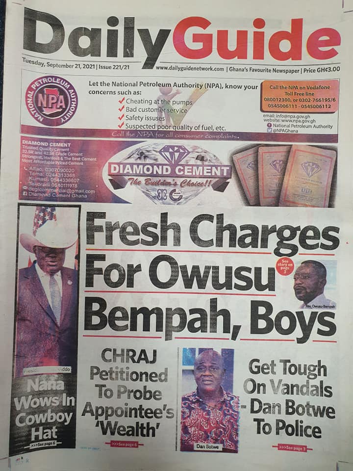Home/Newspaper Headlines/Today at the newsstand Newspaper Headlines Today at the newsstand 0 24 Less than a minute Facebook Twitter LinkedIn Pinterest Skype WhatsApp Telegram Viber Source; Ghana/otecfmghana.com 0 24 Less than a minute Facebook Twitter LinkedIn Pinterest Skype WhatsApp Telegram Viber Show More Share Facebook Twitter LinkedIn Pinterest Skype WhatsApp Telegram Viber Share via Email Print