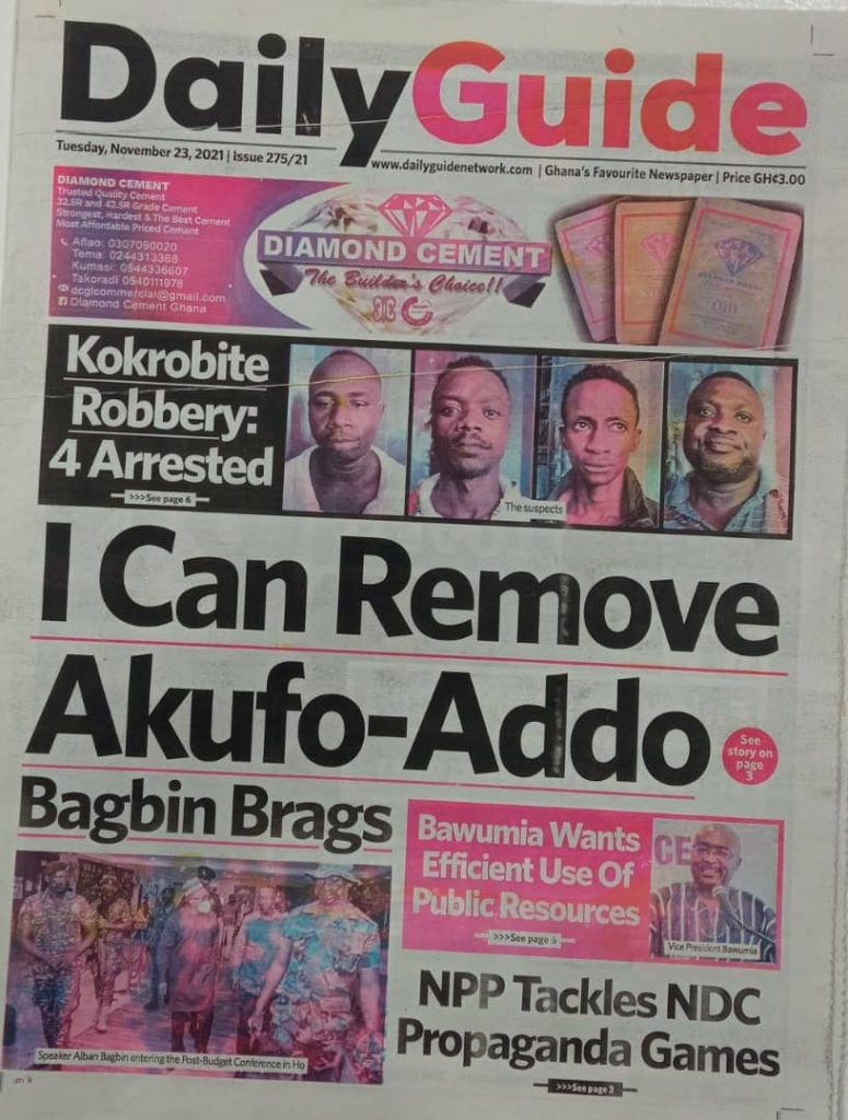 Home/Newspaper Headlines/Today at the newsstand Newspaper Headlines Today at the newsstand 0 12 Less than a minute Facebook Twitter LinkedIn Pinterest Skype WhatsApp Telegram Viber Source: Ghana/otecfmghana.com 0 12 Less than a minute Facebook Twitter LinkedIn Pinterest Skype WhatsApp Telegram Viber Show More Share Facebook Twitter LinkedIn Pinterest Skype WhatsApp Telegram Viber Share via Email Print