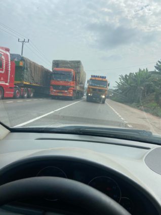 “Dear Ghana Police Service, on my way to Accra (from Kumasi) on Thursday, December 30, 2021, this long vehicle with registration number GW 402 V, did this reckless overtaking at Kwahu Fodoa at about 9:41 am. The driver pushed oncoming vehicles off the road, a situation that would have resulted in dire consequences for road users who were caught in this mess”, George Sarpong posted.