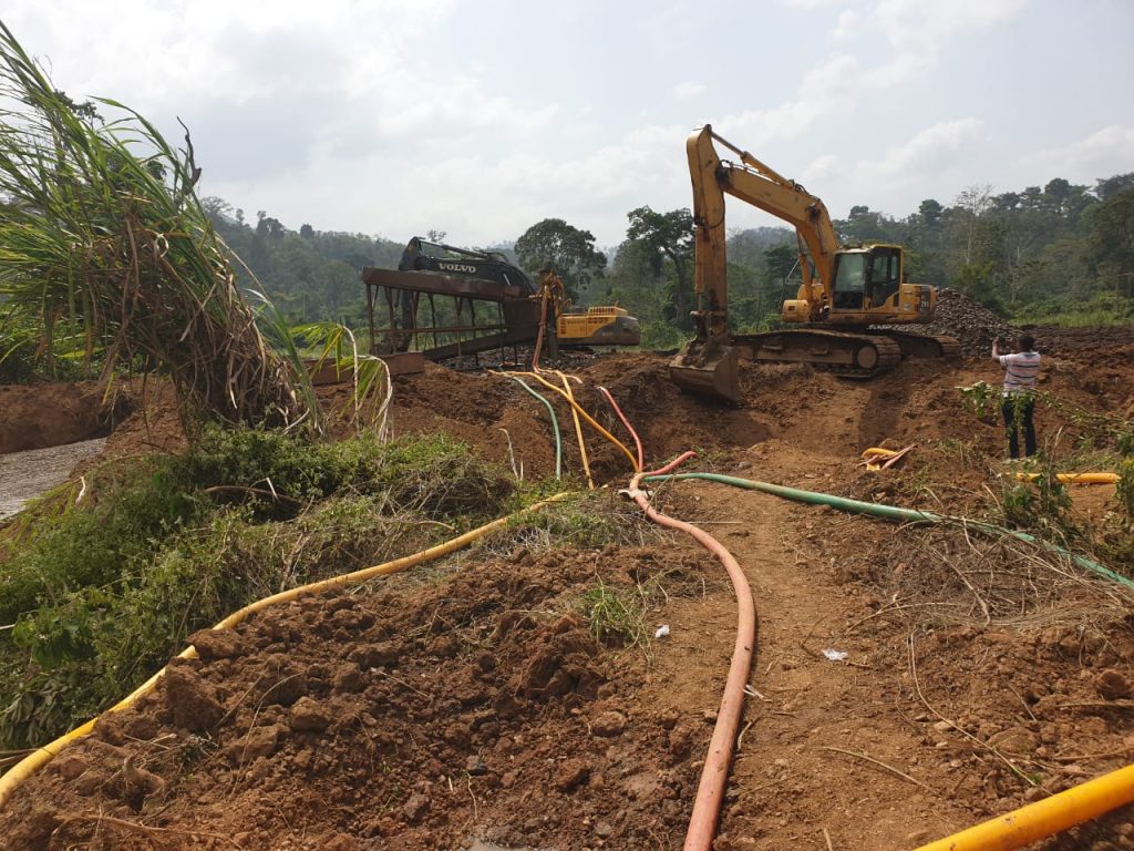 With about six excavators, the DCE and his workers have taken over the Miniti site of the private company and are currently mining illegally using unconventional methods.