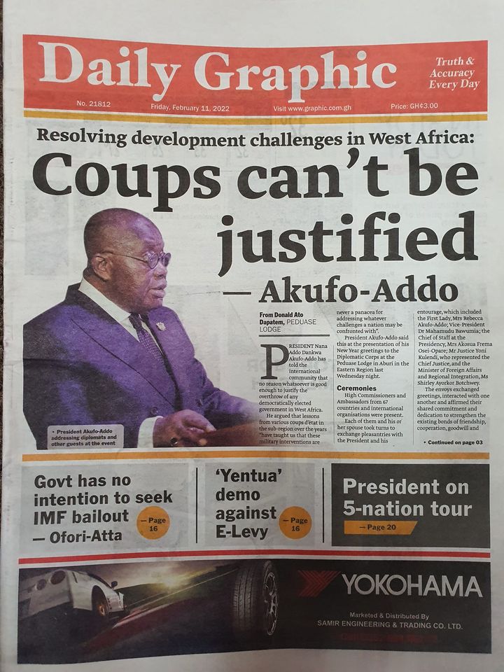 Home/Newspaper Headlines/Today at the newsstand Newspaper Headlines Today at the newsstand 0 12 Less than a minute Facebook Twitter LinkedIn Pinterest Skype WhatsApp Telegram Viber Source: Ghana/otecfmghana.com 0 12 Less than a minute Facebook Twitter LinkedIn Pinterest Skype WhatsApp Telegram Viber Show More Share Facebook Twitter LinkedIn Pinterest Skype WhatsApp Telegram Viber Share via Email Print