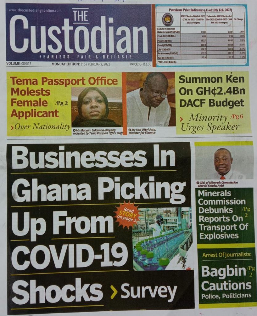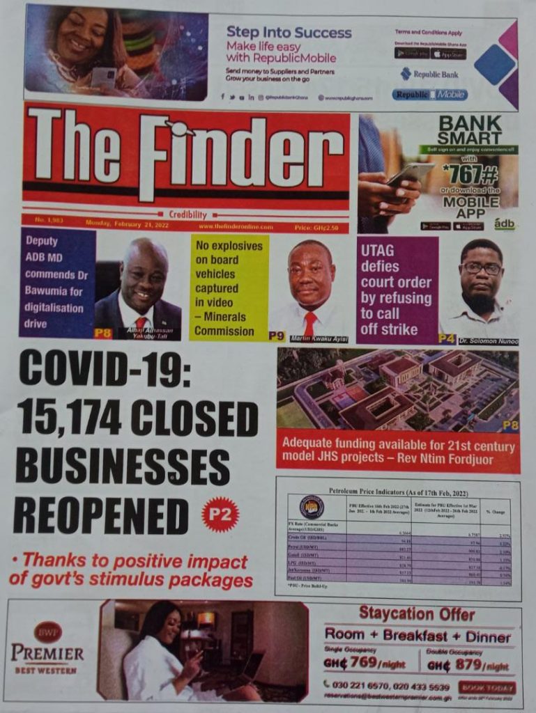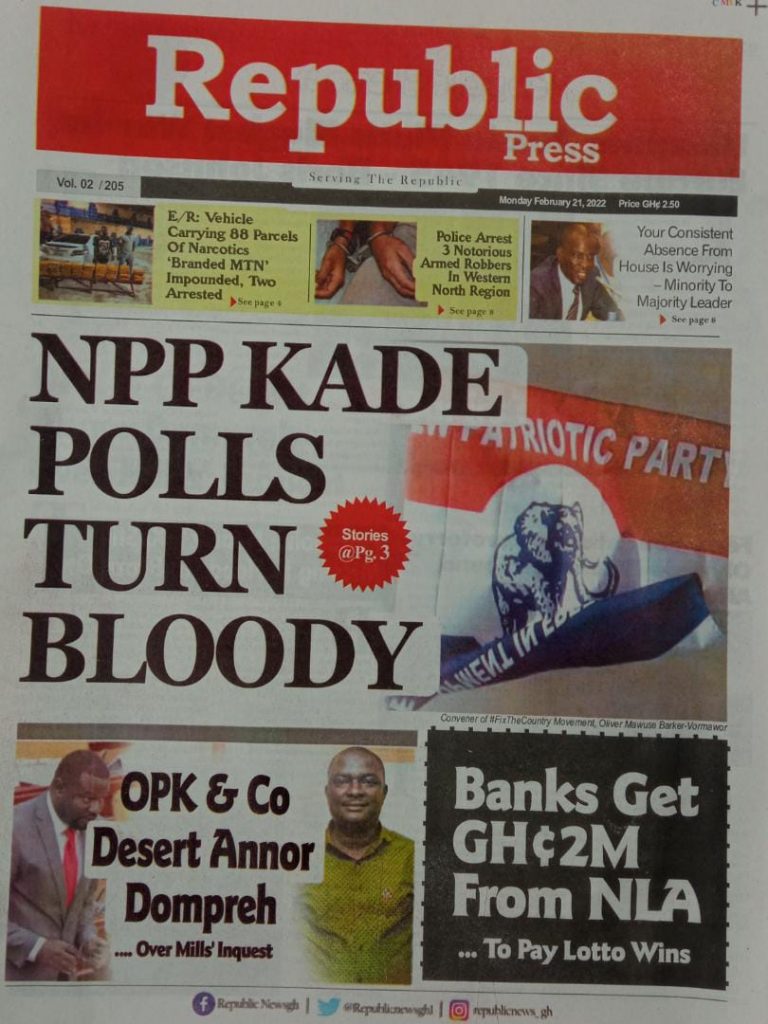 Home/Newspaper Headlines/Today at the newsstand Newspaper Headlines Today at the newsstand 0 7 Less than a minute Facebook Twitter LinkedIn Pinterest Skype WhatsApp Telegram Viber Source: Ghana/otecfmghana.com 0 7 Less than a minute Facebook Twitter LinkedIn Pinterest Skype WhatsApp Telegram Viber Show More Share Facebook Twitter LinkedIn Pinterest Skype WhatsApp Telegram Viber Share via Email Print