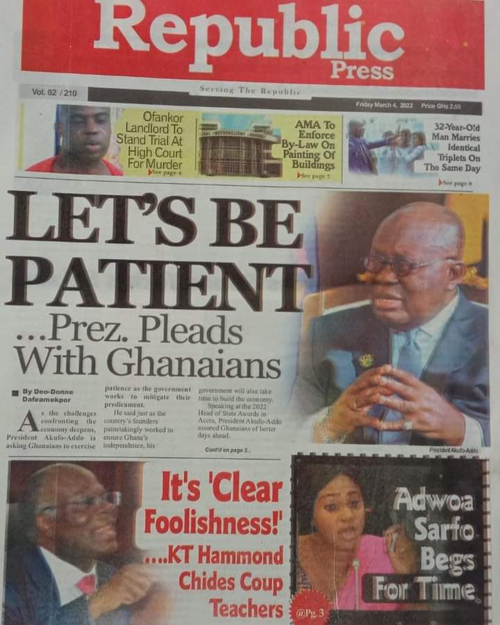 Home/Politics/Today at the newsstand Politics Today at the newsstand 0 14 Less than a minute Facebook Twitter LinkedIn Pinterest Skype WhatsApp Telegram Viber Source: Ghana.otecfmghana.com 0 14 Less than a minute Facebook Twitter LinkedIn Pinterest Skype WhatsApp Telegram Viber Show More Share Facebook Twitter LinkedIn Pinterest Skype WhatsApp Telegram Viber Share via Email Print