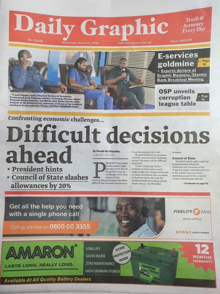 Home/Newspaper Headlines/Today at the newsstand Newspaper Headlines Today at the newsstand 0 19 Less than a minute Facebook Twitter LinkedIn Pinterest Skype WhatsApp Telegram Viber Source: Ghana/otecfmghana.com 0 19 Less than a minute Facebook Twitter LinkedIn Pinterest Skype WhatsApp Telegram Viber Show More Share Facebook Twitter LinkedIn Pinterest Skype WhatsApp Telegram Viber Share via Email Print