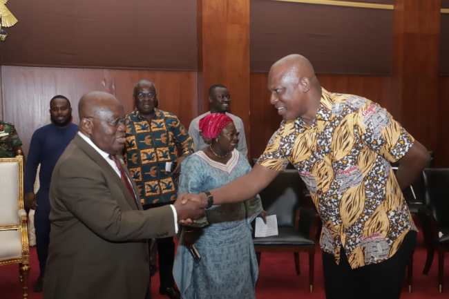 The overall winner of the 2021 Junior Graphic Essay Competition, Evangelyn Ukoma Awa, presented a framed copy of his essay to President Akufo-Addo.