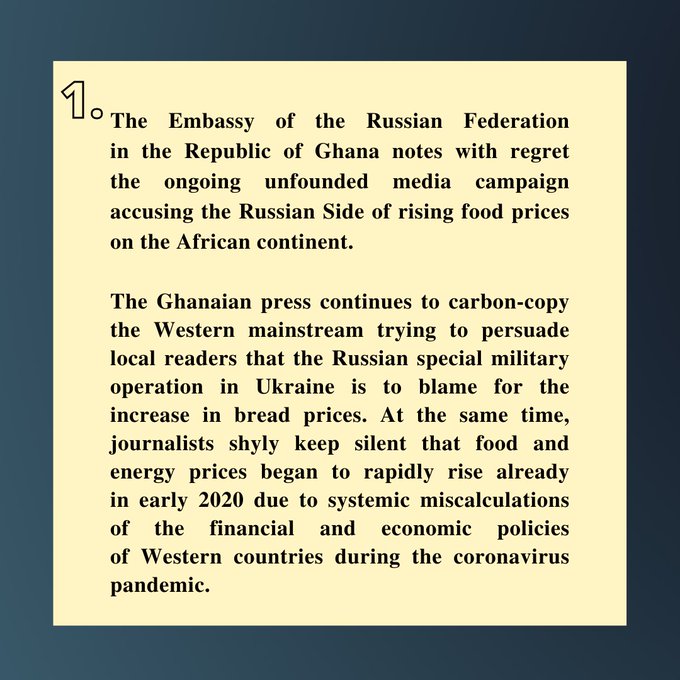 The Russian Embassy in Ghana has urged the media to stop blaming Russia for the increasing prices of food items in the country.