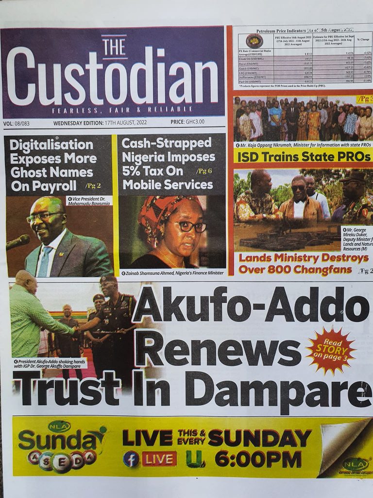 Home/Newspaper Headlines/Today at the newsstand Newspaper Headlines Today at the newsstand 0 3 Less than a minute Facebook Twitter LinkedIn Pinterest Skype WhatsApp Telegram Viber Source: Ghana/otecfmghana.com 0 3 Less than a minute Facebook Twitter LinkedIn Pinterest Skype WhatsApp Telegram Viber Show More Share Facebook Twitter LinkedIn Pinterest Skype WhatsApp Telegram Viber Share via Email Print