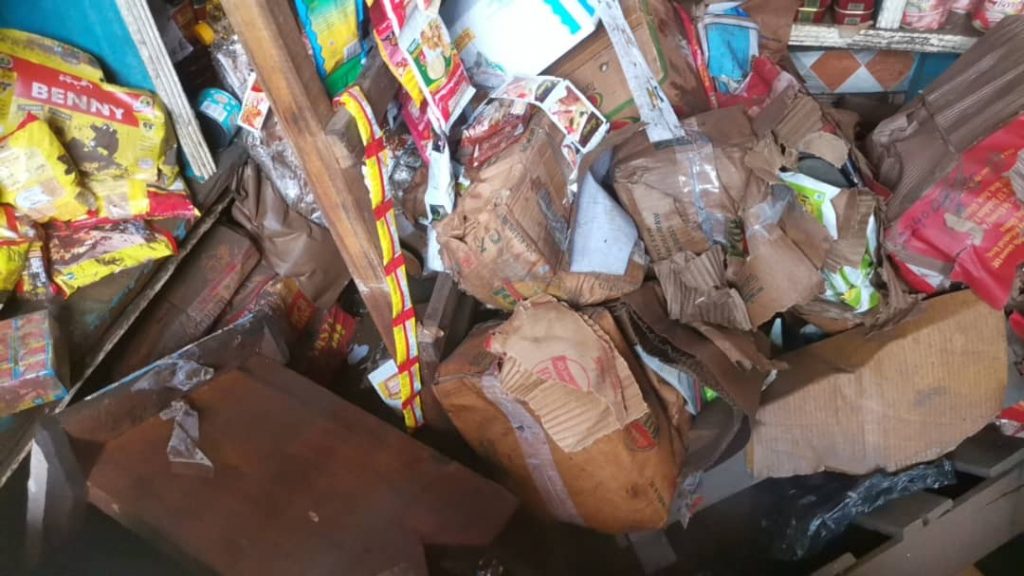 According to them the contractor has blocked all major drains in the area forcing flood water into their shops.