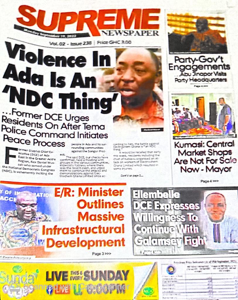 Home/Newspaper Headlines/Today at the newsstand Newspaper Headlines Today at the newsstand 0 7 Less than a minute Facebook Twitter LinkedIn Pinterest Skype WhatsApp Telegram Viber Source: Ghana/otecfmghana.com 0 7 Less than a minute Facebook Twitter LinkedIn Pinterest Skype WhatsApp Telegram Viber Show More Share Facebook Twitter LinkedIn Pinterest Skype WhatsApp Telegram Viber Share via Email Print