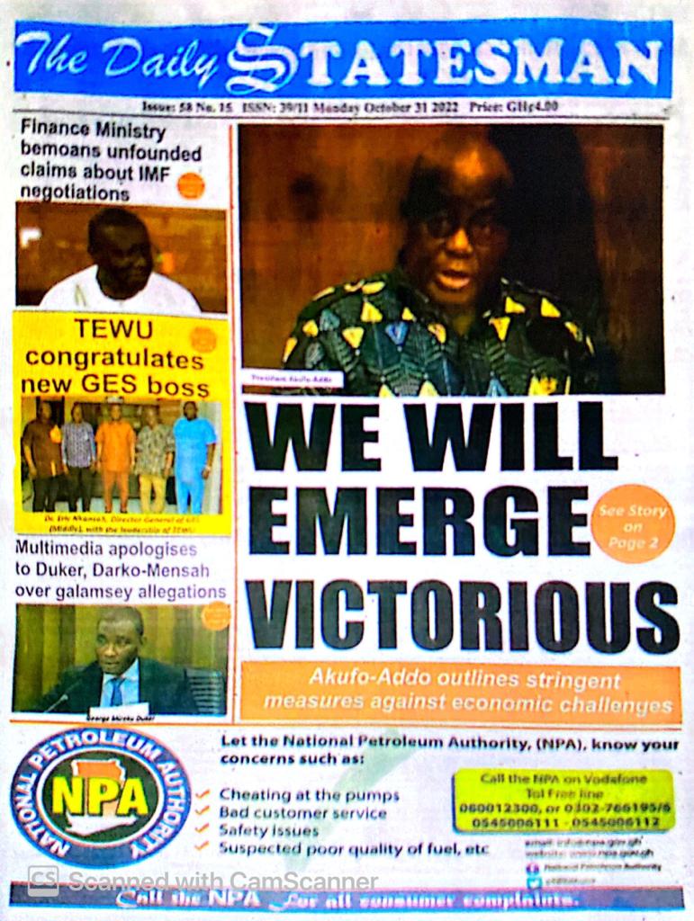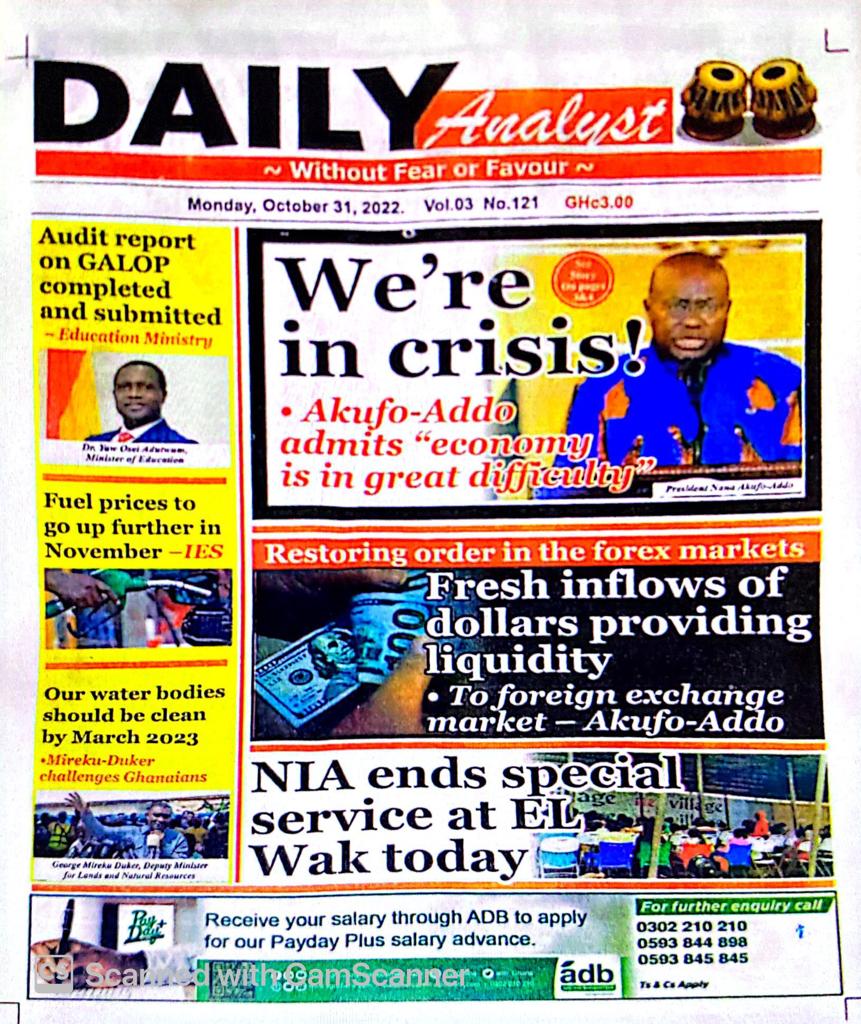 Home/Newspaper Headlines/Today at the newsstand Newspaper Headlines Today at the newsstand 0 6 Less than a minute Facebook Twitter LinkedIn Pinterest Skype WhatsApp Telegram Viber Source: Ghana/otecfmghana.com 0 6 Less than a minute Facebook Twitter LinkedIn Pinterest Skype WhatsApp Telegram Viber Show More Share Facebook Twitter LinkedIn Pinterest Skype WhatsApp Telegram Viber Share via Email Print
