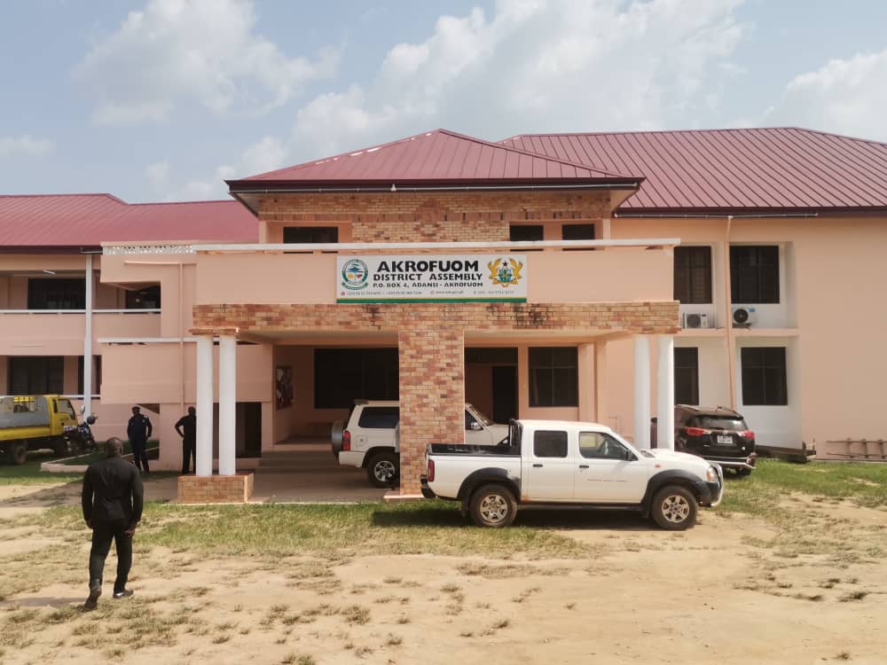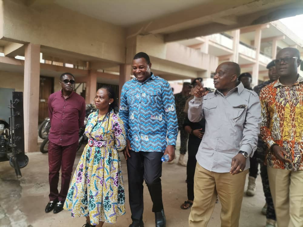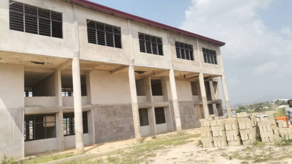 Hon Simon Osei Mensah during his tour of the Adansi Akrofoum district, visited the District Assembly block which is completed and awaiting commissioning, an 18 classroom block at Akrofoum Senior high Technical school, a 40 lockable shop project at Akrofoum which has also been completed waiting commissioning and the to the Agenda 111 site where the project had been stalled for some months now.