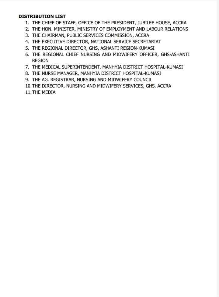 The strike was to compel government to dismiss the Ashanti regional director of the National Service Scheme, Alex Opoku-Mensah who verbally assaulted a nurse at the hospital last week.
