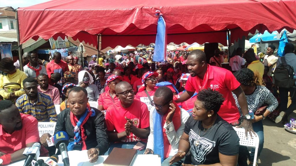 Frederick Owusu (Ortega), Spokesperson for Grassroots Delegates Platform addressing the media at Bantama Market.