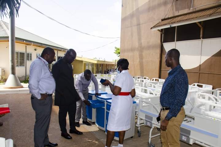 The Chief Executive Officer (CEO) of the hospital, Prof. Otchere Addai-Mensah, the Medical Director, Dr. Kwadwo Sarbeng and Mrs. Marina Assabil, Chief Nursing Officer (C.N.O) and Ag. Director of Nursing Services, have already inspected the installation and approved the distribution of the beds and bedside lockers to the various directorates.