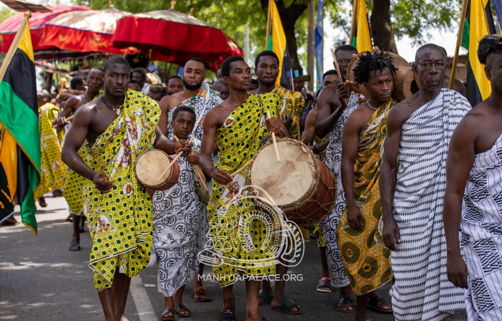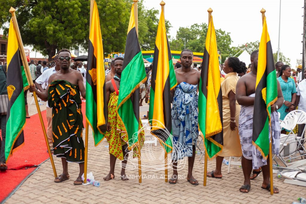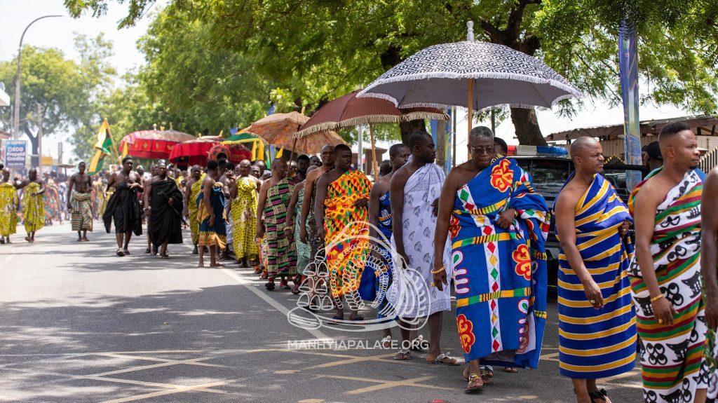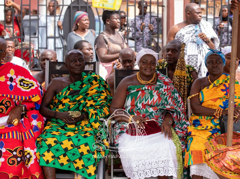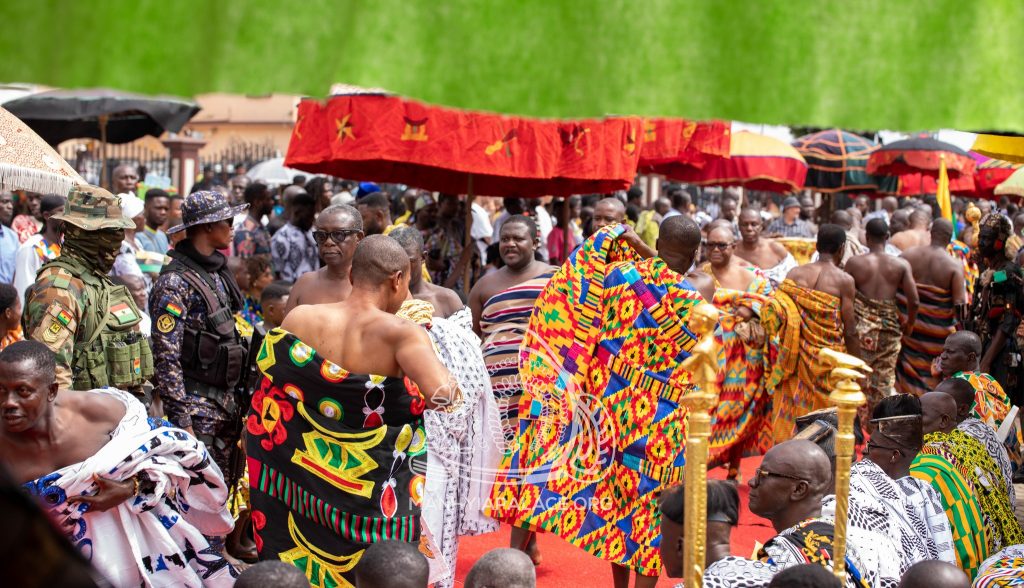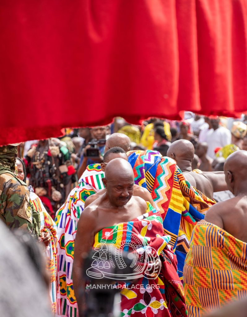 As usual, the Asantehene arrived at the celebrations in style, in a palanquin adorned in Kente cloth and gold ornaments with pageantry amidst drumming and dancing.