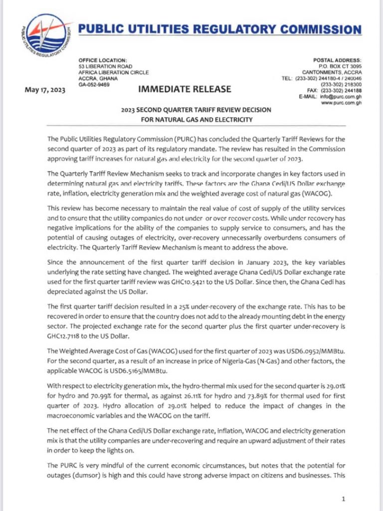“The PURC, therefore, sought to balance prevention of extended power outages and its adverse implications on jobs and livelihoods, while minimising the impact of rate increases on consumers. The Commission will continue to monitor the quality of service to ensure consumers get value for money,” the statement added.