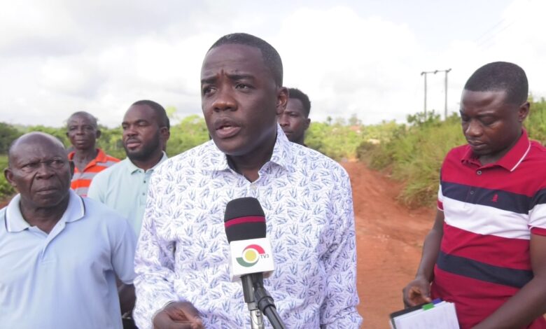 Lawyer Raph Poku-Adusei, NPP Parliamentary hopeful for Bekwai speaking to the media during work on the Bekwai- Koniyaw route last Wednesday