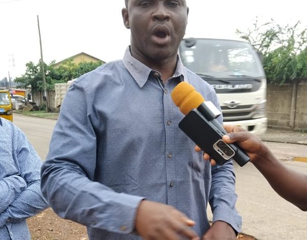 Hon Oscar Riches, Assembly Member for Asokwa New Town addressing the media on the destruction of coconut seedlings he had planted