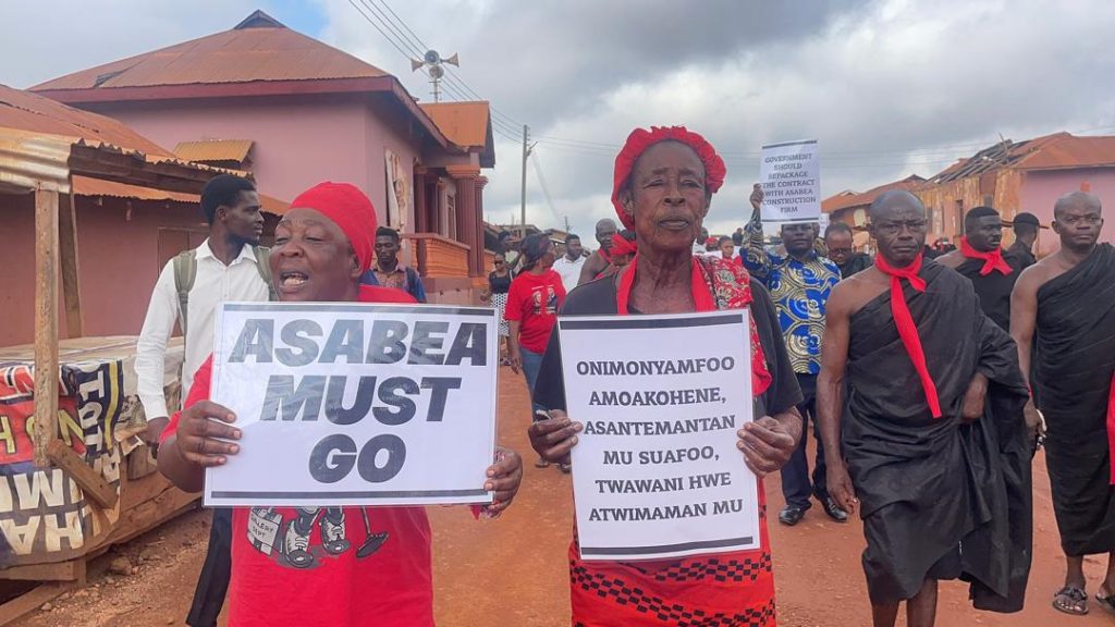 Dozens of chiefs from the Atwima Traditional Council in the Ashanti Region have staged a massive protest against Asabea Constructions Ltd, the contractor handling a major road connecting communities in the area.