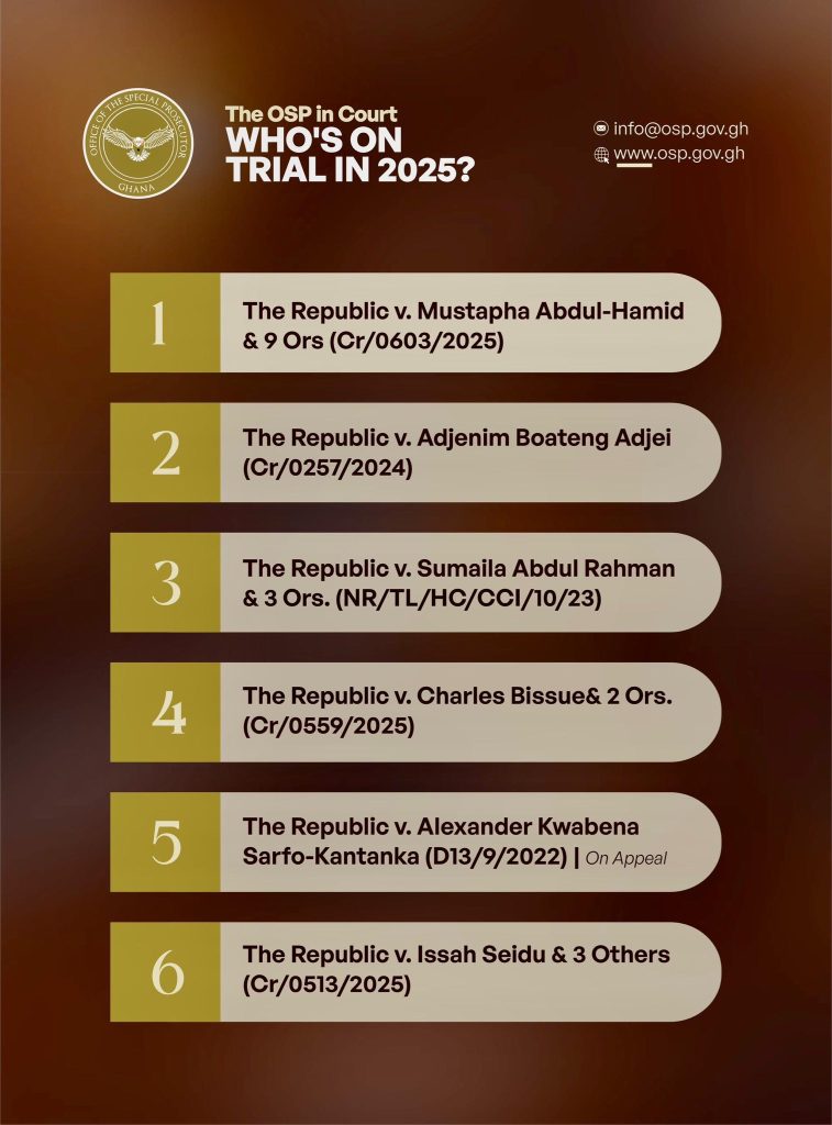 “With the courts resuming from vacation, these are the cases the OSP is actively prosecuting on your behalf, with more cases to be filed in the last quarter of the year. Earlier this year, seven individuals were convicted through plea bargains,” the post on X read.