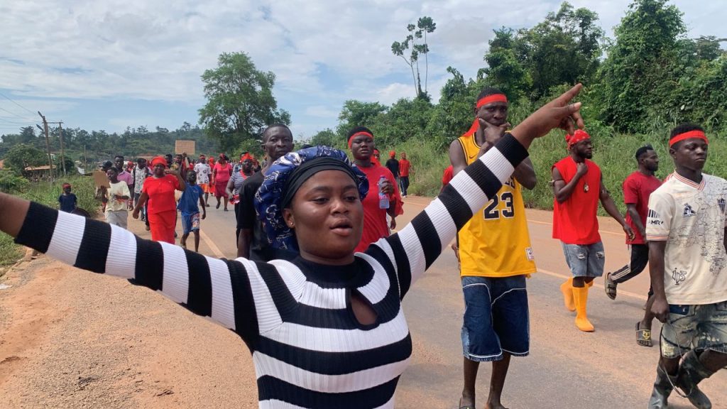 The protest staged on Thursday, October 16, 2025, was triggered by what the community described as persistent physical assaults and harassment by soldiers attached to a private company carrying out a reclamation exercise.