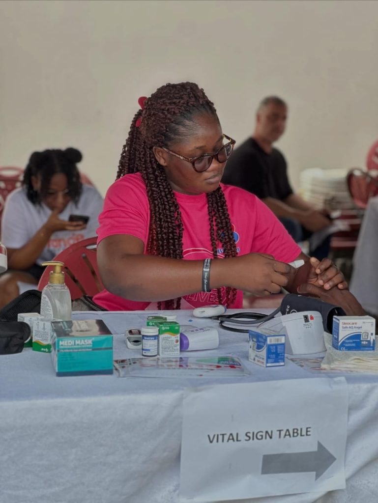 Patrons received checks for a range of vital health indicators, including malaria, blood sugar levels, blood pressure, body mass index (BMI), and Hepatitis B status, among other related health assessments.