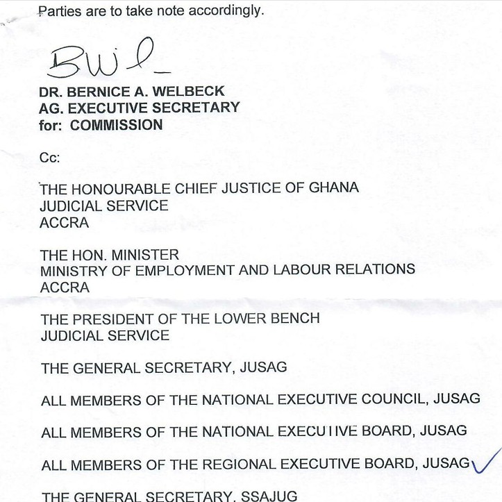 In a letter dated January 14, 2026, and signed by the Acting Executive Secretary of the Commission, Dr. Bernice A. Welbeck, the Commission said it received a notice of intended industrial action from JUSAG on January 13, 2026.