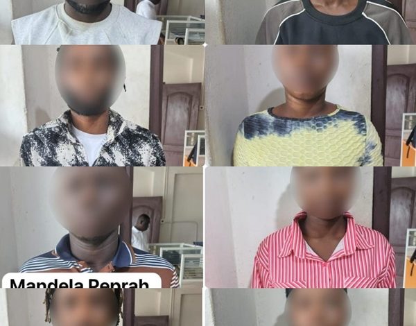The arrested suspects are Akwasi Atakari, 36, Mandela Peprah, 31, Ernest Oduro, 28, Joseph Odoom, 31, Augustine Agyemang, 24, Eric Addo, 33, Dorcas Atanga, 22, and Agnes Baser, 21.