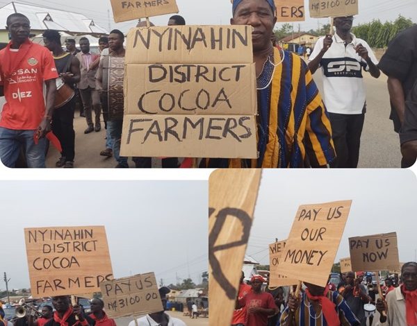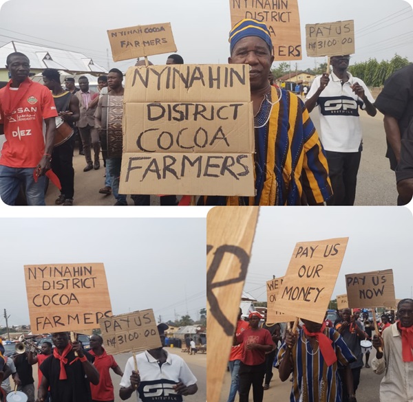 Hundreds of cocoa farmers in Ghana’s Atwima Mponua District have taken to the streets, protesting the government’s failure to release funds owed to them.
