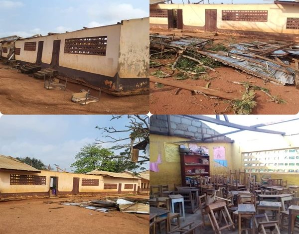 The storm ripped off the roofing of the classroom block and damaged several school properties, including students’ textbooks, desks and chairs, leaving parts of the school in a poor condition.
