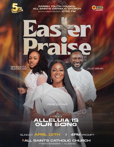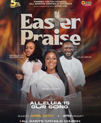 The major gospel music event is scheduled to take place on Sunday, April 12th, at All Saints Catholic Church, Santasi Fankyenebra in Kumasi.