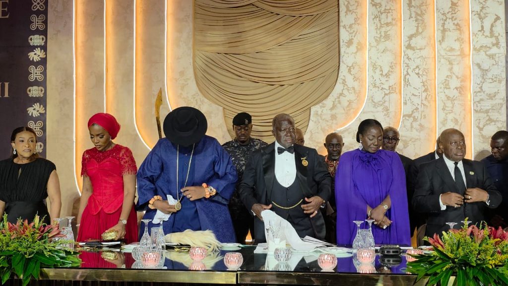 Political, traditional, religious, and business leaders gathered at the Manhyia Palace as the Diaspora Affairs Office at the Office of the President, in partnership with E ON 3 Group, hosted the event in honour of the Asantehene as a Pillar of Peace.