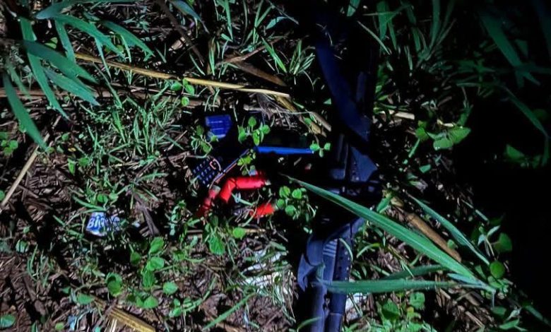 A pump-action gun loaded with four live cartridges, two spent cartridges, and three assorted keypad mobile phones were retrieved from the scene. Two additional live cartridges were also found in the pocket of the deceased suspect, along with a talisman tied around his waist.
