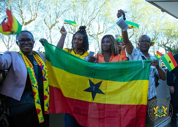 Upon his arrival on Easter Monday, President Mahama was warmly received by Ghanaian families resident in Lyon, who turned out in numbers to welcome him and express their support.