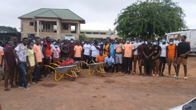 Kumasi High School former and current students in a pose with staff at the end of tbe clean up exercise…