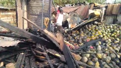 At least six stores, primarily stocked with watermelons and other perishable goods, were destroyed by a fire at the Bantama…