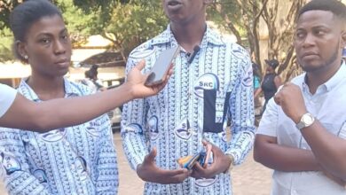 Mr Richard Owusu, SRC President at CSU flanked by Comfort Asare and Philemon Klokpordzi Williams, Deputy General Secretary and External…