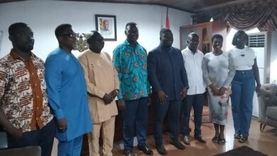 Dr Yaw Osei Adutwum (4th from left) standing close to Dr Frank Amoakohene, Ashanti Regional Minister during the courtesy call…